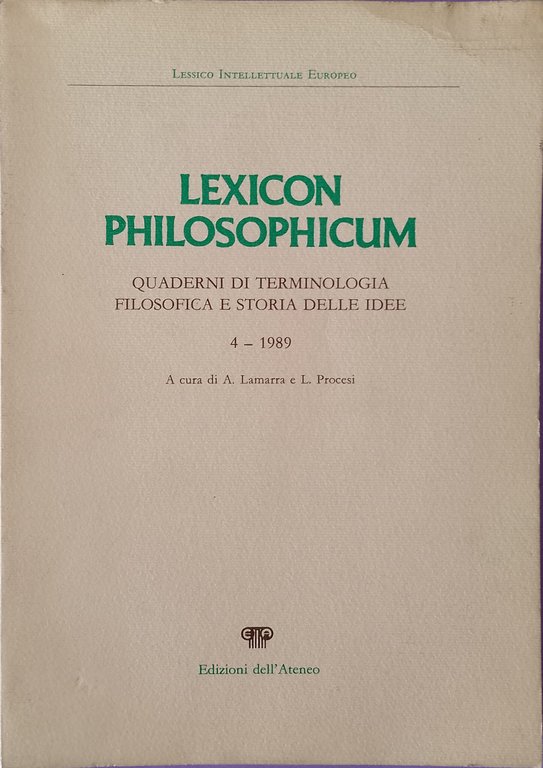 Lexicon philosophicum - Quaderni di terminologia filosofica e storia delle idee - n. 4 1989