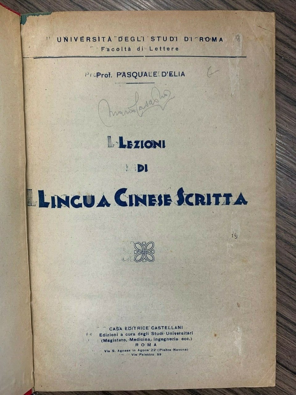Roma. Castellani 1960, 8°, pp. 171, Segni di studio. Vecchia dispensa universitaria. Attaccata l'ultima pagina alla legatura in mz tela artigianale coeva. Sciupato ma leggibile.