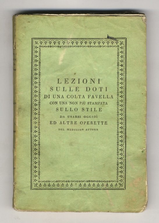 Lezioni sulle doti di una colta favella. Con una non piuù stampata sullo stile da usarsi oggidì ed altre operette del medesimo autore.