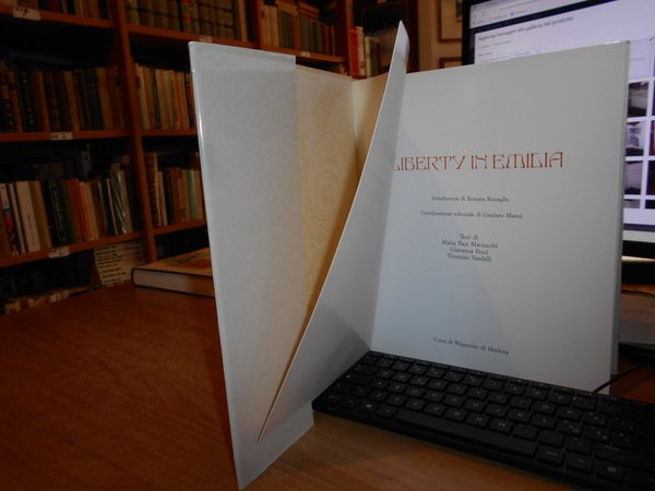 AA. VV. LIBERTY IN EMILIA. Introduzione di Rossana Bossaglia. Modena, Grafiche Artioli per Cassa di Risparmio di Modena, 1988. In-4°, tela edit. con sovracopertina ill. a col. 293, (1) pp. con numerose illustrazioni a colori nel testo. Piccolo strappo riparato con scotch al vertice della sovracopertina ma libro in ottimo stato di conservazione. Neg. mob. 21 in basso