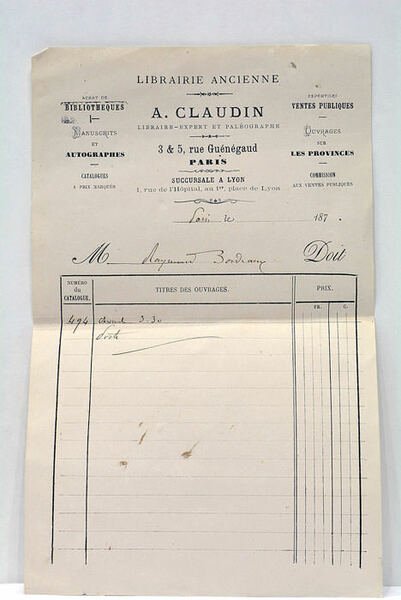 LIBRAIRIE ANCIENNE. BON DE COMMANDE.