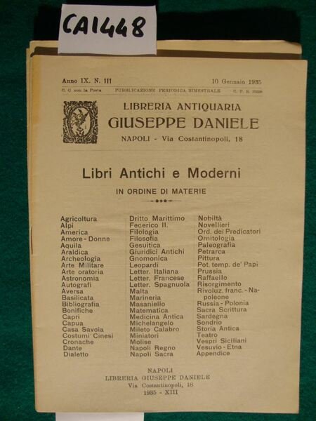 Libreria Antiquaria Giuseppe Daniele - Cataloghi (1935) | Libri antichi e moderni |