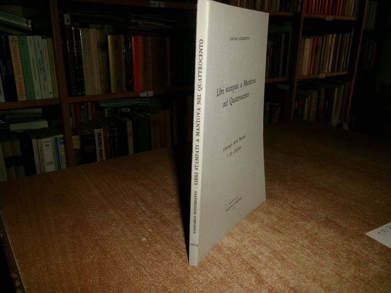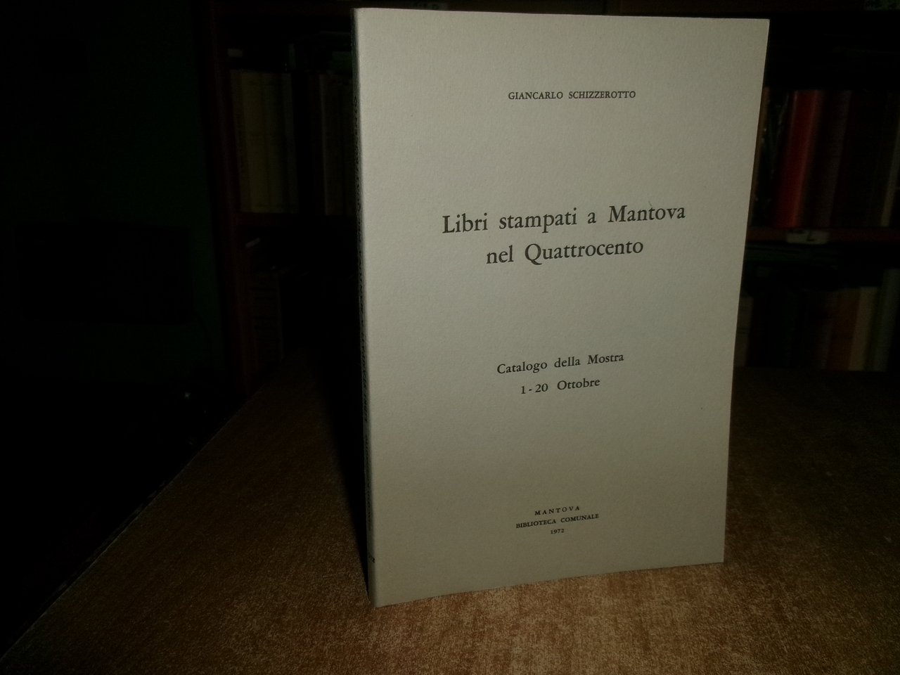 Giancarlo SCHIZZEROTTO. Mantova, Biblioteca Comunale, 1972. Libri stampati a Mantova nel Quattrocento Catalogo della Mostra 1 - 20 Ottobre. In-8°, br. edit. 77 pp. con numerose tavole fuori testo. Come nuovo. Neg. mob. nero 10