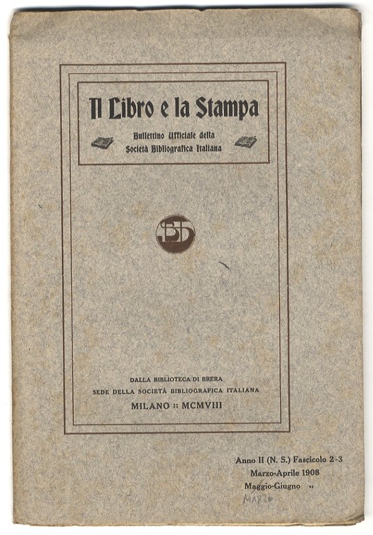 - dalla Biblioteca di Brera, sede della Società Bibliografica, Italiana