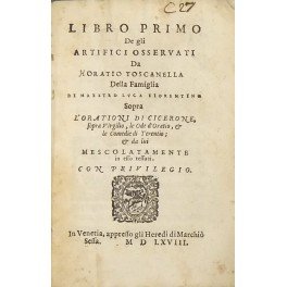 Libro primo de gli artifici osservati da Oratio Toscanella della Famiglia di Maestro Luca Fiorentino sopra l'orationi di Cicerone, sopra Virgilio, le ode d'Oratio, & le comedie di Terentio; & da lui mescolatamente in esso tessuti