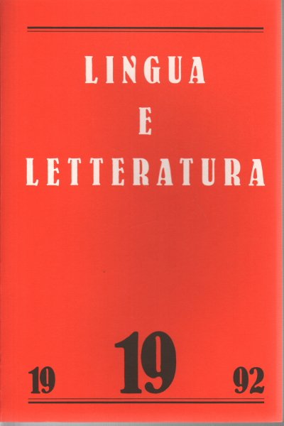 Lingua e letteratura. Anno X, Numero 19, Autunno 1992 | Libri antichi e moderni |