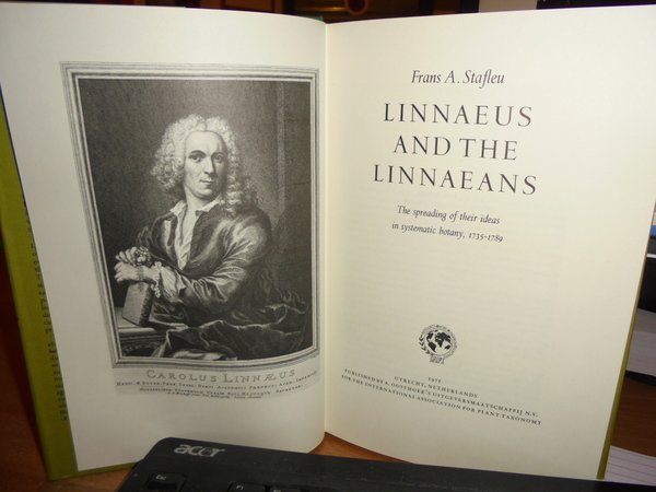 FRANS A. STAFLEU. Utrecht, Nethelands, A. Oosthoek', 1971. LINNAEUS and the LINNAEANS. The spreading of their ideas in systematic botany, 1735-1789. In-8°, tela verde con titolo in oro al dorso, sovracopertina. (xvi), 386 pp. con numerose riproduzioni ed alcune illustrazioni nel testo. Esemplare come nuovo. Uff. C - III - 6