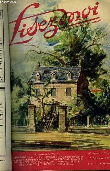 10 décembre 1949. In-12. Broché. Bon état, Couv. convenable, Dos satisfaisant, Intérieur frais. Paginé de 95 à 142. Texte en colonnes. . . . Classification Dewey : 840-Littératures des langues romanes. Littérature française