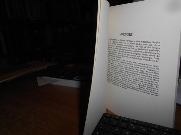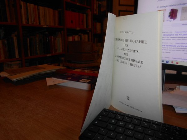 Liturgische bibliographie des XV. jahrhunderts mit ausnahme der missale und livres d'heures. In-8°, br. viii, 71 pp. Come nuovo con testo in tedesco. Neg. lett. mod. mob. H