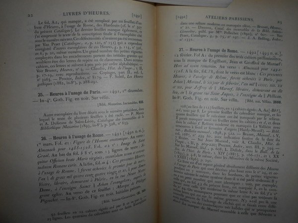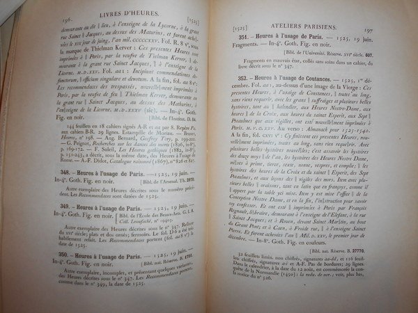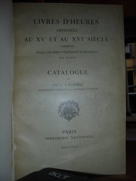 LIVRES D' HEURES Imprimés au XV et au XVI Siècle conservés dans les Bibliothequès Publiques de Paris.