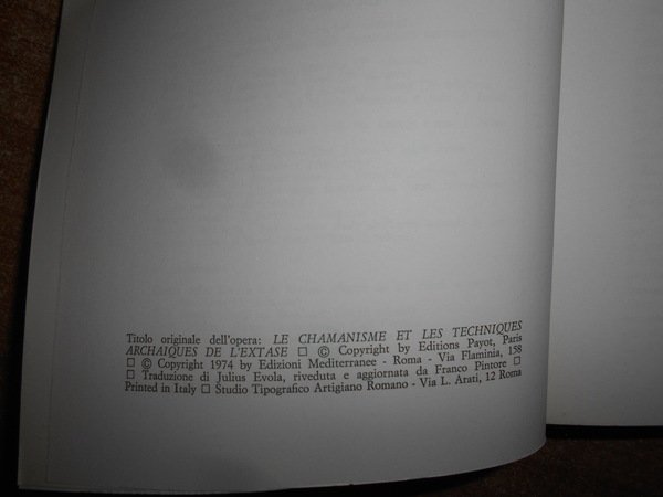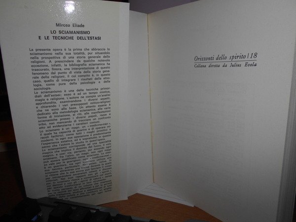 MIRCEA ELIADE. Roma, Edizioni Mediterranee, 1974. LO SCIAMANESIMO E LE TECNICHE DELL' ESTASI. In-8° piccolo, cart. edit. con sovracopertina ill. a col. 547, (1) pp. In ottimo stato di conservazione. Neg. mens. bianca cassa