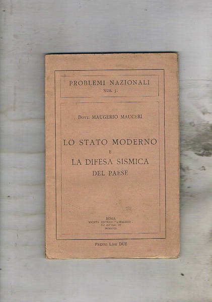 Lo stato moderno e la difesa sismica del paese. | Libri antichi e moderni | Mauceri Maugerio.