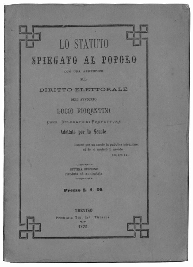 Lo statuto spiegato al popolo con una apprendice sul diritto elettorale dell'avvocato Lucio Fiorentini cons. delegato di prefettura adottato per le scuole.