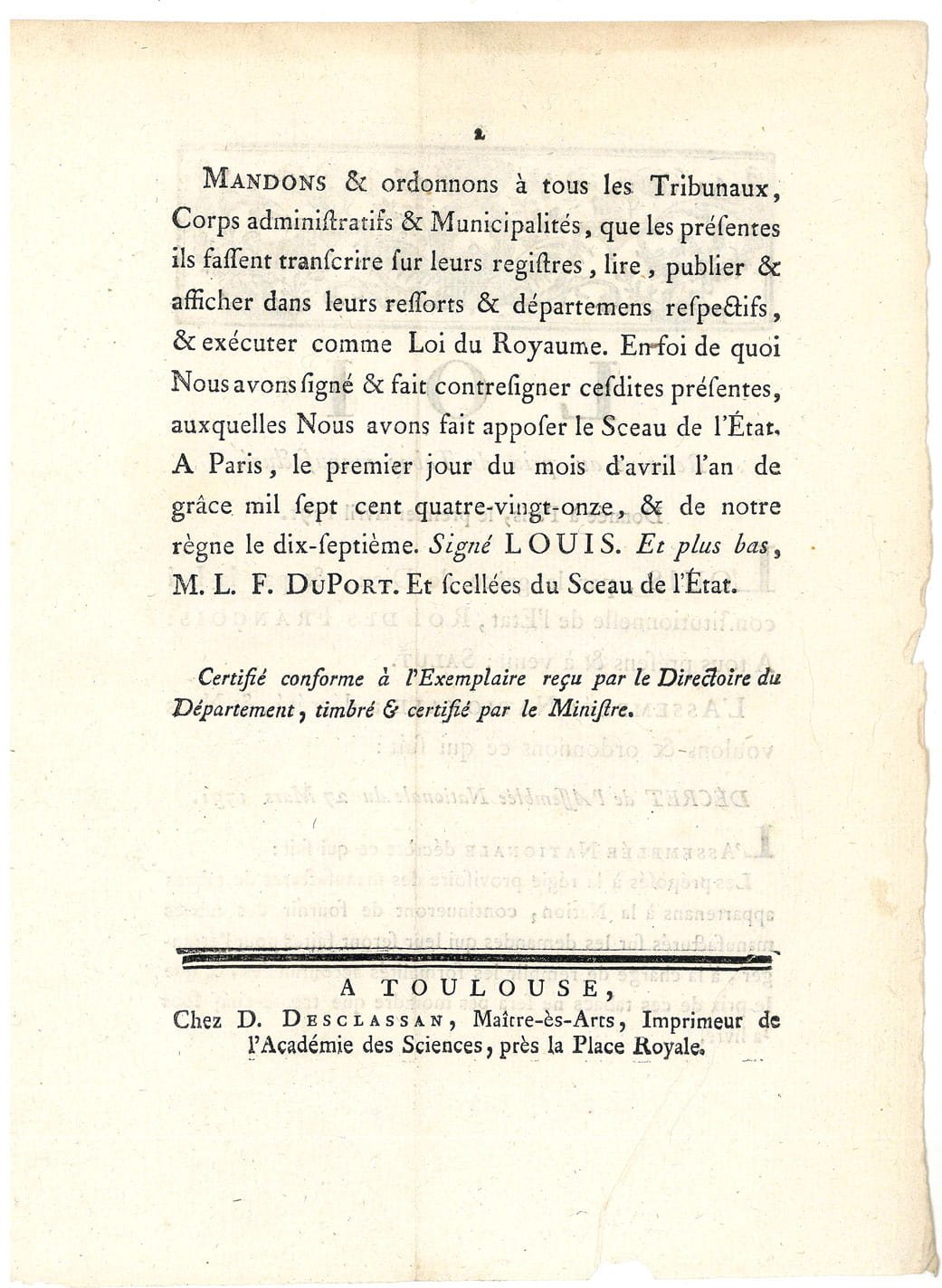 Toulouse, Chez D. Desclassan, 1791.,