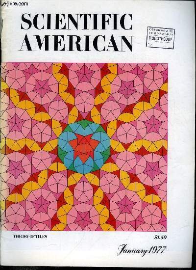 Lot de 8 numéros de l'année 1977 de la revue Scientific American - Avril, Juin, Septembre, Décembre manquants - Theory of tiles, The moon of mars, Acoustics of the singing voice, Exploring the herbarium, Insect eye, Kangaroos, Side-looking radar image