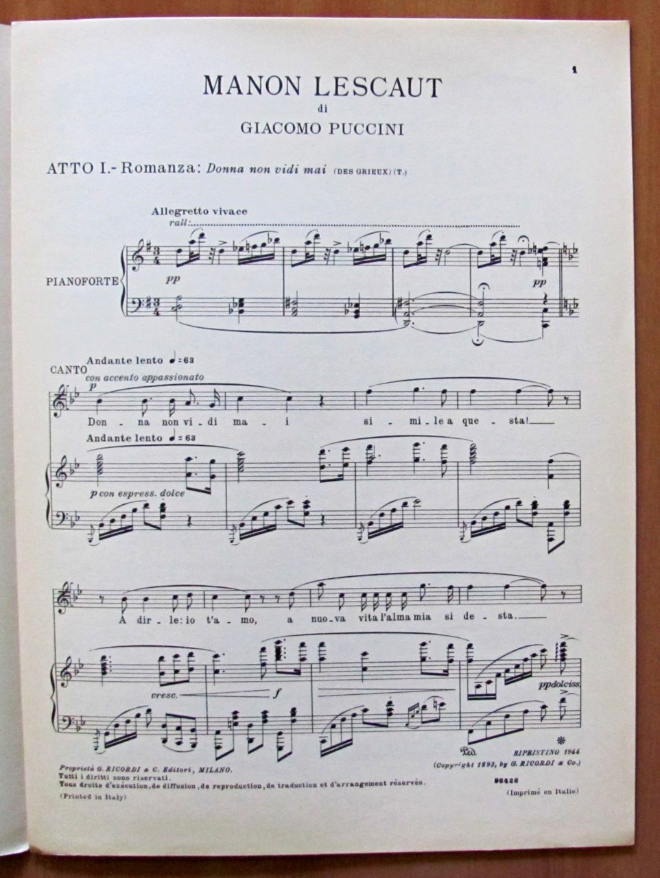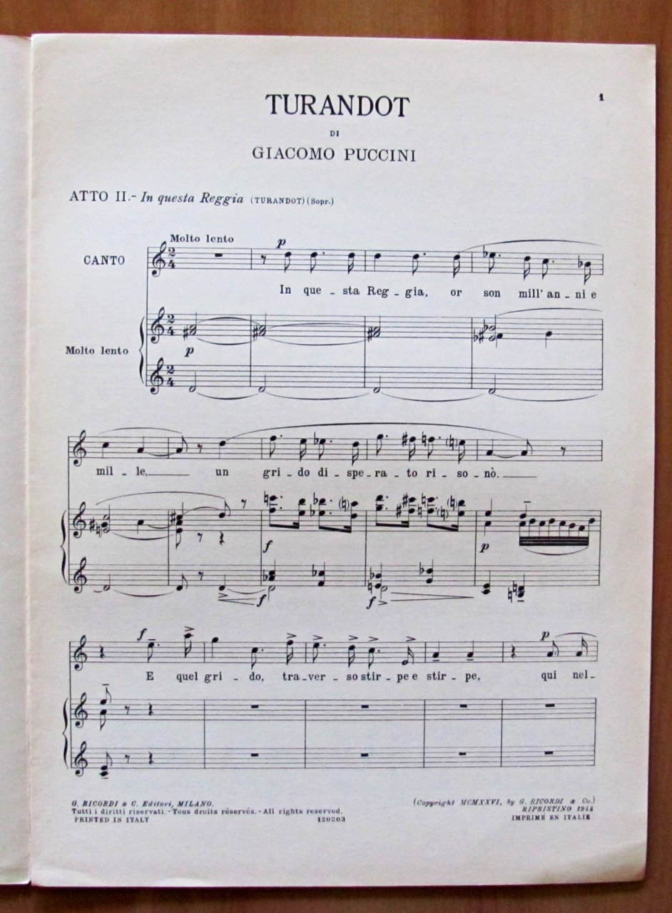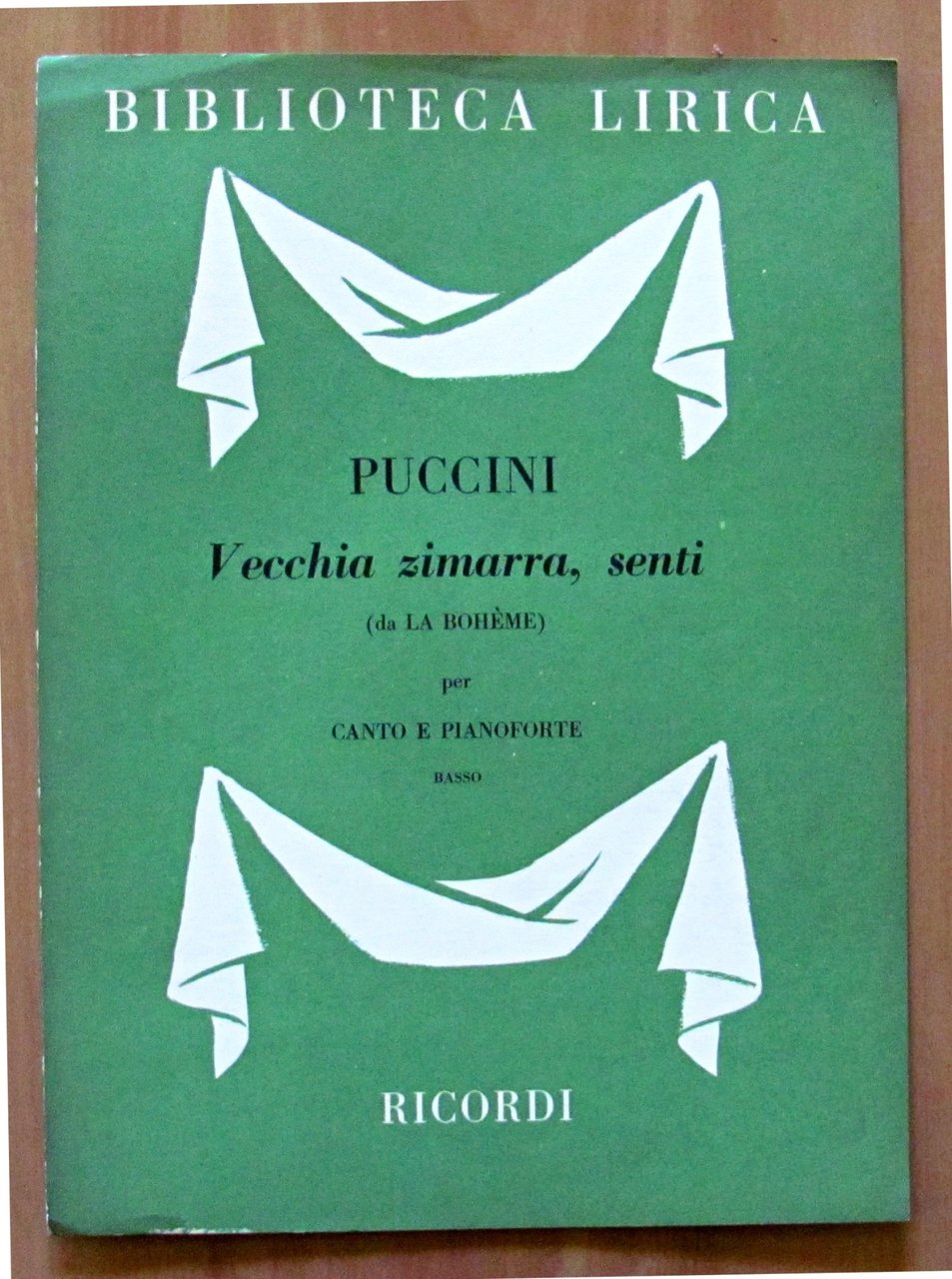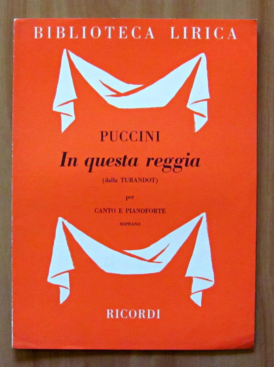 Vecchia zimarra, senti (da La Bohéme), Donna non vidi mai (dalla Manon Lescaut), O dolci mani (dalla Tosca), In questa reggia (dalla Turandot), Ch'ella mi creda (dall'opera La Fanciulla del West). Ed. Ricordi - Milano, 1954-1955-1956. Brossure editoriali. 24x32. OTTIMO STATO , Ottimo (Fine)
