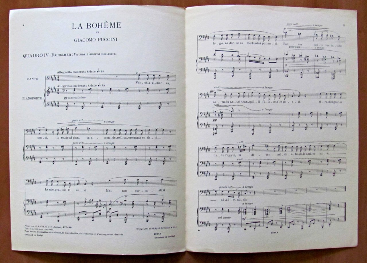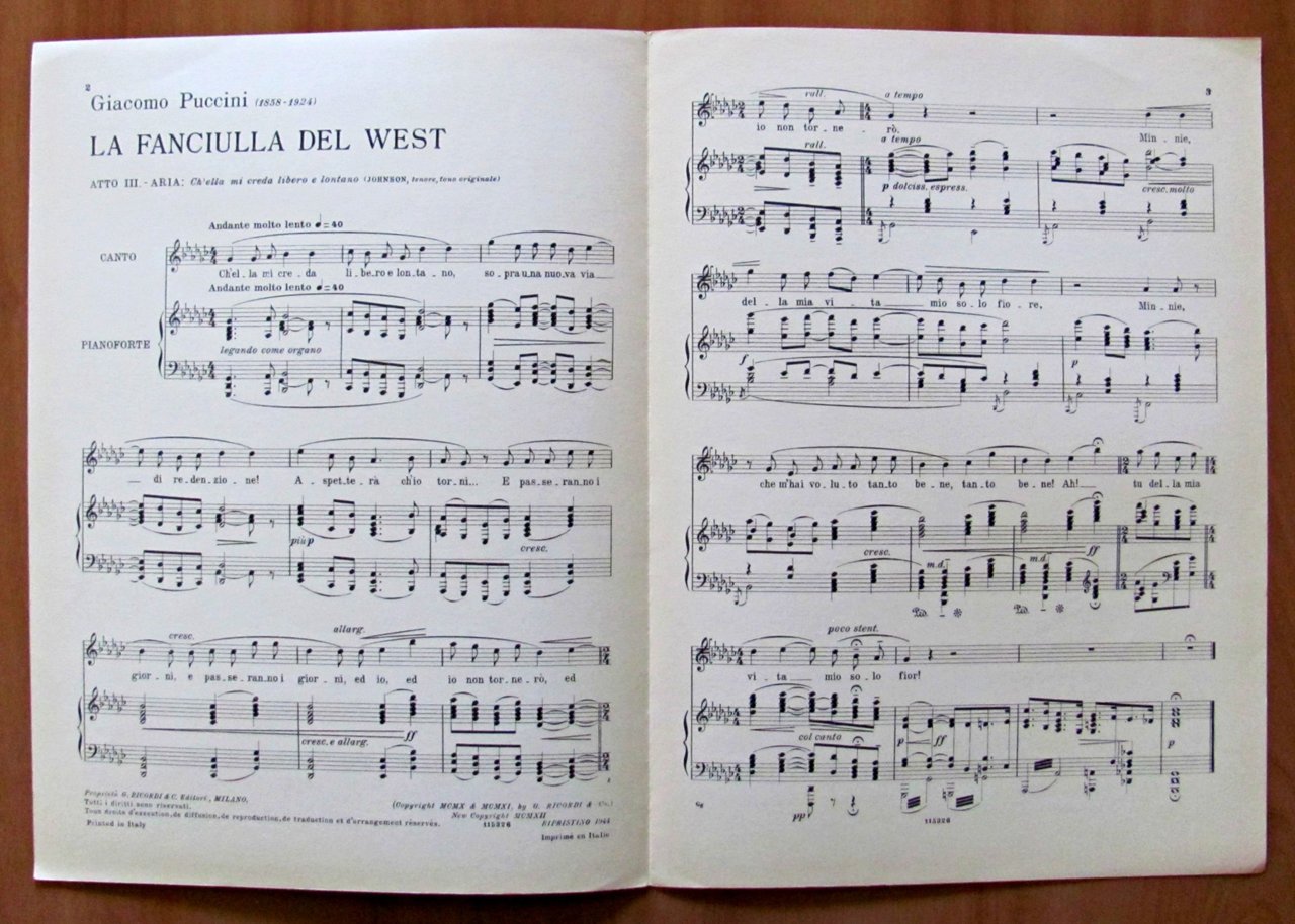 LOTTO DI 5 SPARTITI DI PUCCINI PER CANTO E PIANOFORTE - La Bohéme, Manon Lescaut, Tosca, Turandot, La Fanciulla del west - Collana BIBLIOTRECA LIRICA