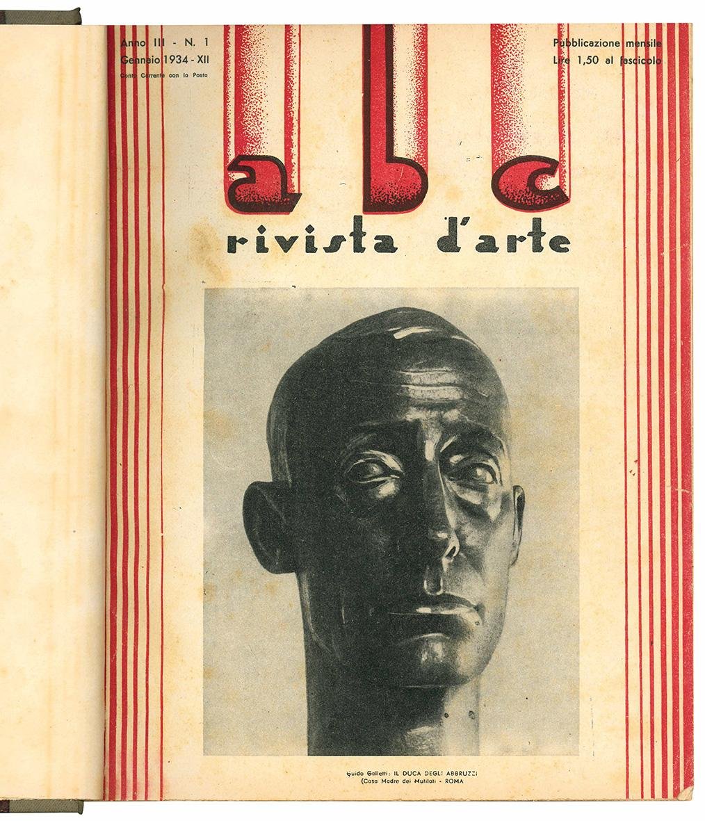Annata completa del 1934, composta da dodici numeri, di "abc Rivista d'arte", interessante rivista mensile che "... riflette le arti rappresentative, dalla pittura alla scoltura, ed ha un programma di nobile eclettismo devoto al nostro glorioso e superbo passato anche se guarda con fede e simpatia alle tendenze dell'oggi e del domani ...".