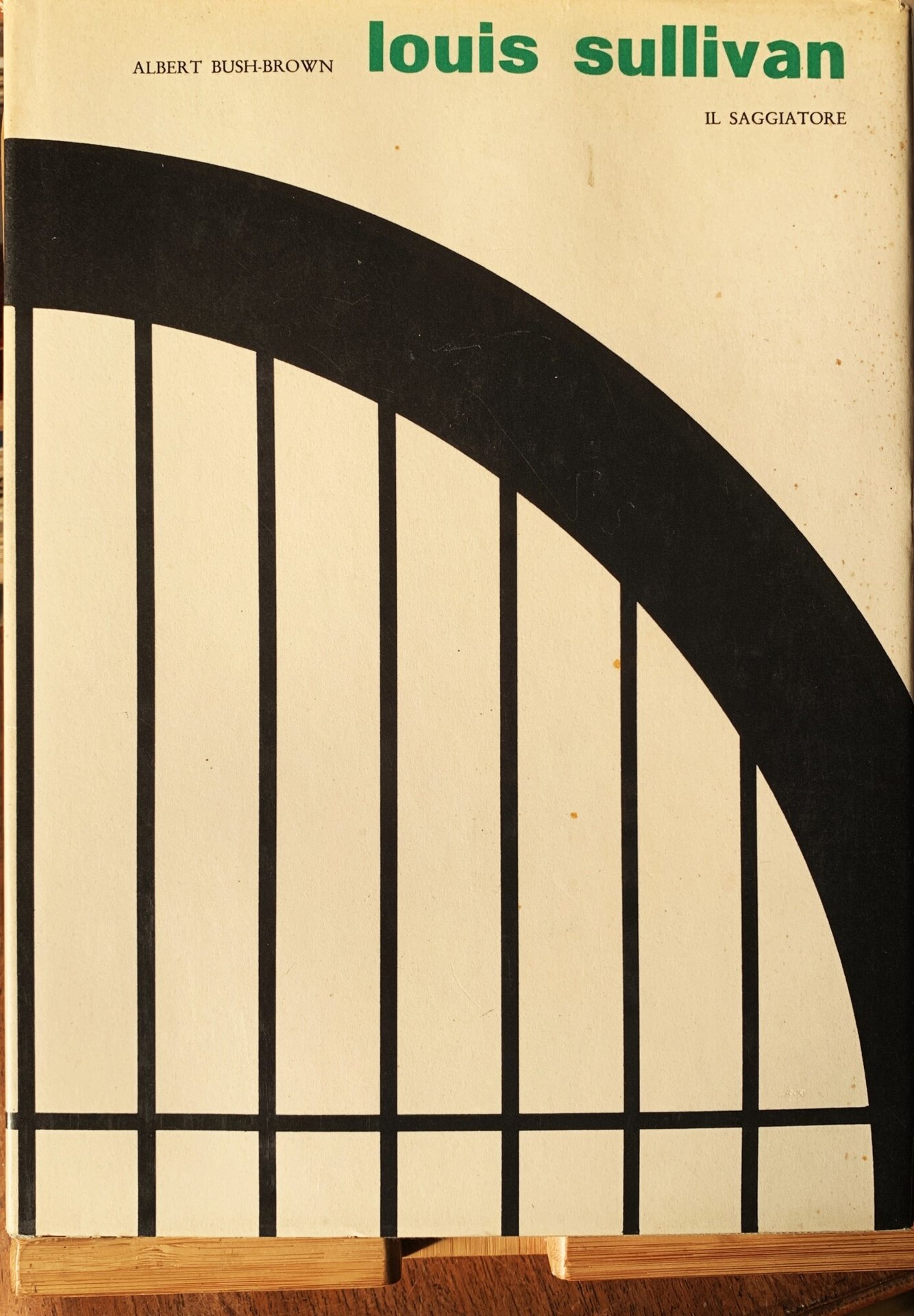 I ed.: aprile 1961 (© 1961 George Braziller, Inc., New York e Il Saggiatore, Milano. Titolo originale "Louis Sullivan"). Traduzione: Aldo Cuzzer. Collana I maestri dell'architettura contemporanea 8. VIII/ 138/ rilegatura in tela cerata grigia con titoli in bianco e disegno architettonico in nero (da L. Sullivan, Tav. 11, da "A system of architectural ornament")/ sovraccoperta patinata bianca con titoli in nero e verde e con disegno architettonico in nero. Con 112 illustrazioni in b/n in tavole patinate f.t.. Copertina e sovraccoperta disegnate da Anita Klinz. Stato buono (sovraccoperta dai margini leggermente consunti, lievemente ingiallita e con fioriture puntiformi). Sommario: Il testo - Note al testo - Le tavole - Elenco delle illustrazioni - Notizie biografiche - Elenco cronologico di edifici e progetti - Cenni bibliografici - Indice dei nomi e delle cose notevoli.