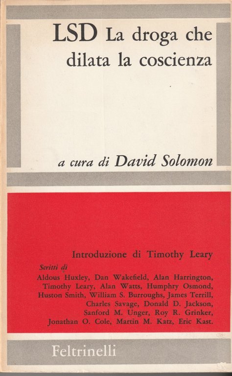 Prima edizione. Scritti di Aldous Huxley, Dan Wakefield, Alan Harrington, Timothy Leary, Alan Watts, Humphry Osmond, Huston Smith, William S. Burroughs, James Terrill, Charles Savage, Donald D. Jackson, Sanford M. Unger, Roy R. Grinker, Jonathan O. Cole, Martin M. Katz, Erica Kast.