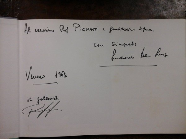 LUDOVICO DE LUIGI Galleria d'arte venezia R, CON SUA DEDICA E FIRMA al prof. Pignatti e firma del gallerista