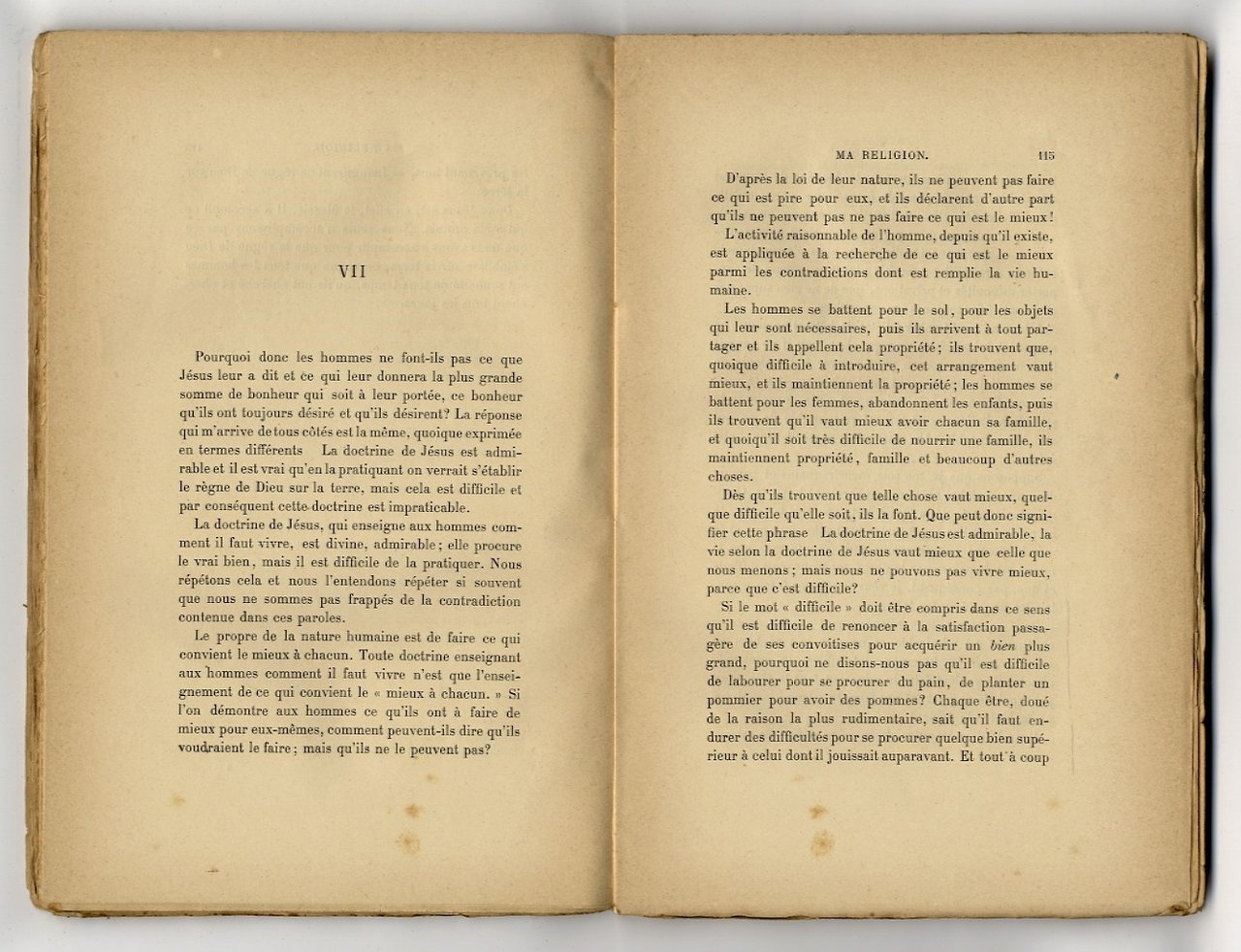 Paris, Librairie Fischbacher, 1885, in-8, brossura editoriale, pp. 266, (2). Dorso rifatto, mancanze marginali alla cop. ant., reintegrate con velina. Alcune note in matita.