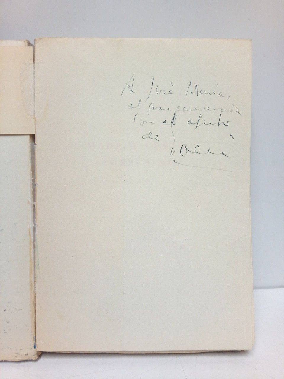 [PRIMERA EDICION].- Madrid: Ed. Cultura Clásica y Moderna (Imp. Gráficas Tejario, S. a.), 1958.- 302 p., [1 h.]; 4º menor (20,5 x 14,3 cm); Portada a dos tintas; Intonso, con todas sus barbas; Cartulina Ed. con solapas.* En excelente estado. Con una dedicatoria autógrafa del autor en la primera hoja de cortesía, que dice: "A José María, el gran camarada con el afecto de Tomás" [Pienso que se refiere a José María Alfaro, camarada falangista]. Incluye una tarjeta de visita de Tomás Borrás. LITERATURA Y FILOSOFÍA ESPAÑOLAS DE LOS SIGLOS XIX-XXI Y SU HISTORIA EN GENERAL