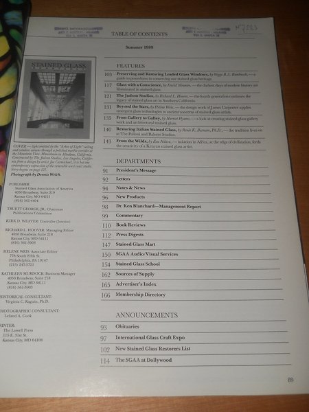 magazine STAINED GLASS vol. 84 n. 2 summer 1989
