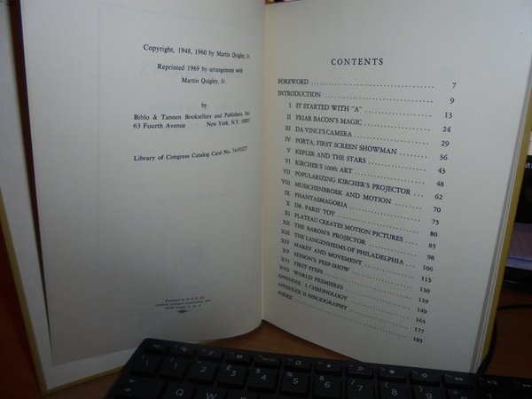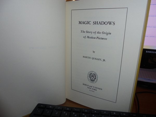 MARTIN, QUIGLEY. New York, Biblo and Tannen, 1969. MAGIC SHADOWS. The Story of the Origin of Motion Pictures. In-8° piccolo, tela gialla con titolo in nero al dorso. 191 pp. con 27 tavole fuori testo. Ottimo esemplare. Uff. C - II - 4