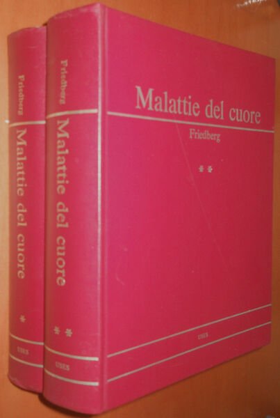 FRIEDBERG, Malattie del cuore (2 volumi) - USES, 1971 - copertina rigida in similpelle bordò (e non rosso come sembra in foto) con scritte oro, formato cm 20 x 25, pag. 2050, alcune illustrazioni e grafici - ottimo stato, senza sottolineature o altro, leggero ingrigimento da deposito polvere per il bordo esterno superiore delle pagine