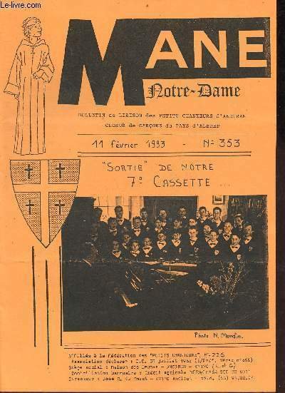 Mané Notre-Dame bulletin de liaison des petits chanteurs d'Andiran choeur de garçons du Pays d'Albret n°353 11 février 1993 - Sortie de notre 7 e cassette - présentation de notre nouvelle cassette - la télévision - concert à la cathédrale - stage.
