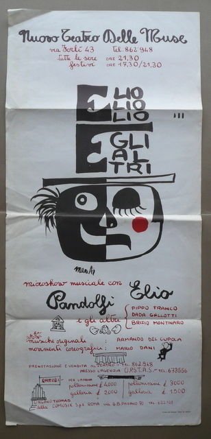 Vedere la descrizione dettagliata Manifesto pubblicitario, Elio e gli altri" Microshow musicale con Elio Pandolfi e gli altri Pippo Franco Dada Gallotti Brizio Montinaro Tirrena Arti Grafiche, Roma, s.d. (1960 circa), manifesto pubblicitario a stampa a colori (grafica Manetta) cm 71,5x33,5. Condizioni di conservazione. Esemplare complessivamente in buone condizioni con tracce d'uso, pieghe di conservazione, minime bruniture, lievissimi accenni d'ingiallimento prevalentemente ai margini (le bruniture e l'accenno d'ingiallimento sono leggermente più accentuati al retro), due angoli con pieghette, un'estremità di una piega con minimo strappetto. SC03.D8630 N Per libri e documenti su questo e altri argomenti visitate il nostro negozio "Libreria Grandangolo" Data l'importanza delle 5 stelle rilasciate durante l'assegnazione del feedback, invitiamo tutti gli acquirenti, se soddisfatti del loro acquisto, a rilasciare tutte le 5 stelle. La mancanza anche solo di una stella illuminata è molto lesiva per noi venditori professionali. Grazie! CONDIZIONI DI VENDITA Spedizione Fino a 5 kg piego di libri raccomandato, oltre i 5 kg pacco postale. Si ricorda che l'imballo viene eseguito con la massima cura. La merce viene spedita a pagamento avvenuto e viaggia a rischio e pericolo dell'acquirente. Per maggiori informazioni vedi la pagina SPEDIZIONI del nostro negozio. Ritiro diretto Siamo disponibili per il ritiro diretto a Modena e a Milano. Per gli indirizzi delle sedi vedi la pagina DOVE SIAMO del nostro negozio. Acquisti multipli Se si acquistano più libri, la spedizione si paga una sola volta, purché si rispettino gli scaglioni di peso. Estero / Foreign For international shipment, please contact us. Metodo di pagamento Pay Pal, bonifico bancario, versamento postale (cc/p, vaglia o altro). La spedizione avverrà entro i primi 4 giorni lavorativi dopo la conferma di avvenuto pagamento. Si emette ricevuta fiscale e a richiesta fattura. Il pagamento deve essere effettuato entro 7 giorni lavorativi dalla data di acquisto, trascorsi i quali l'oggetto sarà rimesso in vendita. Feedback Viene rilasciato dall'acquirente dopo il ricevimento di quanto acquistato. Data la sua importanza, vi invitiamo a leggere il breve testo della pagina FEEDBACK del nostro negozio. Pertanto, in caso di qualsiasi problema, non esitate a contattarci. Diritto di recesso L'acquirente ha il diritto di restituire l'oggetto entro 14 giorni ed essere rimborsato, escluse le spese di porto e imballo. L'oggetto deve essere restituito, dopo previa comunicazione, imballato e nelle medesime condizioni di come era all'origine. "
