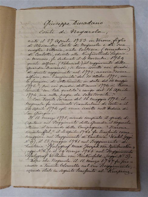 MANOSCRITTO della seconda metà dell’Ottocento o primo Novecento con notizie su Giuseppe Dinadano Conte di Nogarola.