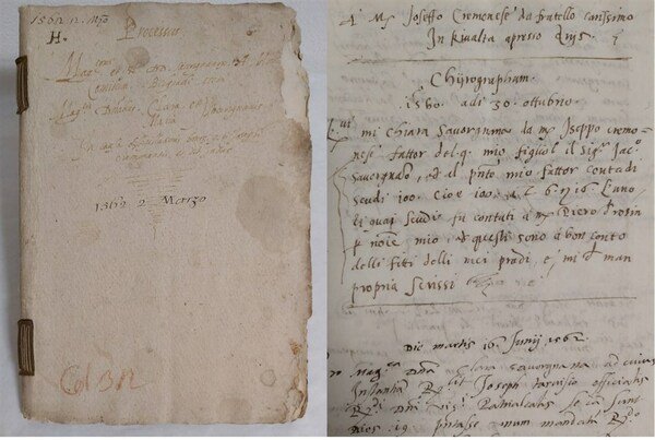 manoscritto cartaceo in-4 (mm. 285x200), cc numerate 57, leg. cart. coevo con tit. mss al piatto ant.: "Processus. 1562 2 Marzo". Si tratta della stesura del processo tra Clara Priuli e Maria Savorgan, rispettivamente moglie e figlia di Pagan Savorgnan, e tal Giuseppe Cremonese, esattore ed amministratore delle proprietà del primogenito di Pagan Giacomo Savorgnan Conte di Belgrado, del castello di Ariis e pertinenze. Dopo la morte di Giacomo nel 1560 l'imputato continuò ad amministrarne i beni ma viene accusato di accumulare molti debiti e sopratutto di non rendere conto del suo operato alla famiglia. Il processo si svolge da marzo a ottobre del 1562, e significativa è la lista finale dei beni sottratti, esposta da Clara, che comprende terre e località ma anche vettovaglie, bestiame, suppellettili, oggetti, libri contabli, denari di proprietà dei Savorgnan. I Savorgnan vennero nominati Conti di Belgrado dal Doge veneziano Leonardo Loredano nel 1515, con proprietà e terreni ma anche una certa autonomia giuridica e amministrativa. La veneziana Clara o Chiara Priuli andò in moglie a Pagan, che presto fu dichiarato insano di mente. Ebbero cinque figli: Giacomo (1521-1560) accusato dell'omicidio del fratello Scipione, Tristan, Giovan Battista e Maria. La madre, già vedova, alla morte del primogenito Giacomo si trova ad affrontare alcune questioni legali contro i fratelli Savorgnan anche nome della figlia e gli atti di questi processi, dal 1560 al 1567, sono conservati all'Archivio di Stato di Venezia. Per quanto riguarda l'archivio del feudo di Belgrado in particolare sappiamo che nel 1735 fu ampiamente distrutto da un incendio a Palazzo Savorgnan in S. Stae a Venezia, e quel che rimase è confluito all'Archivio Capitolare di Udine. Il manoscritto è in chiara grafia, redatto in latino e in parte italiano. Picc. mancanze ad un angolo per la copertina e le prime 15 cc, ma ottimo stato di conservazione. [237]