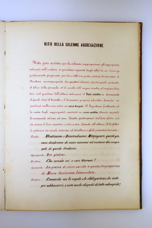 Manoscritto Rituale Solenne Aggregazione di Maria Santissima Immacolata '800