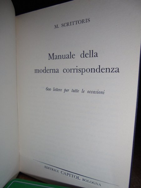 M. SCRITTORIS - Bologna, Edizioni Capitol, 1959. In-16°, copertina plastificata con i titoli in oro. 600 lettere per tutte le occasioni. 332 pp. In ottimo stato di conservazione. Neg. lett. mod.