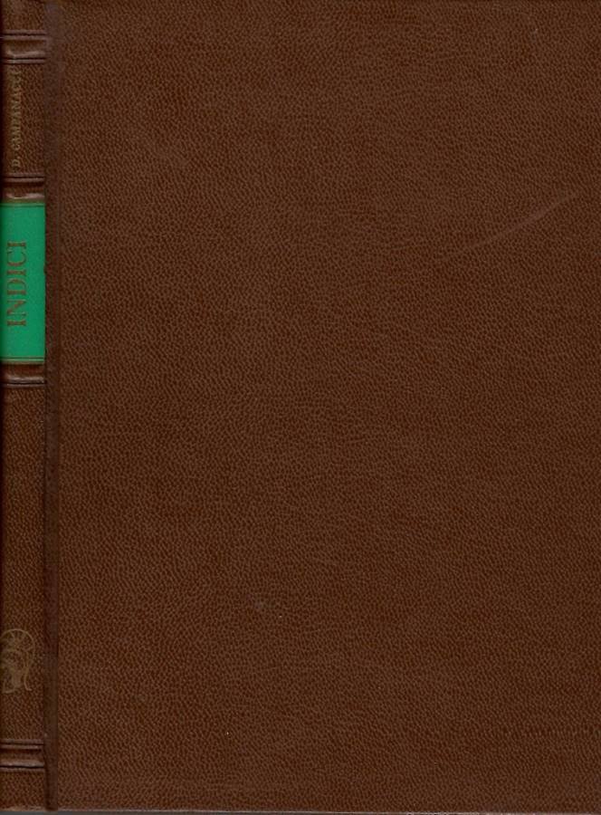 Volume di indice generale e indice analitico di un Opera incompleta: Manuale Di Patologia Medica, anno 1969, cura di Domenico Campanacci. N. pag. 173. Legatura datata, copertina cartonata in tela marrone con impressioni al dorso segnata da lieve compressione al piatto posteriore, colore alonato da polvere, piccole abrasioni alle cuffie, offuscate da leggere fioriture le guardie e risguardie, pagine lucide in buonissime condizioni, minima ossidazione ai tagli.