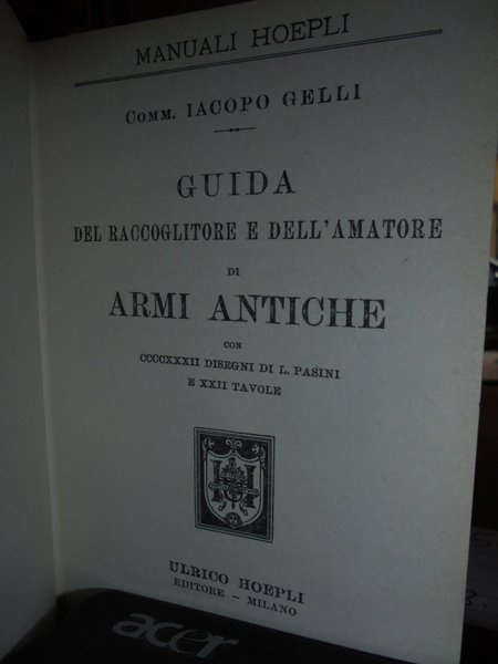 Iacopo, Gelli. Milano, Hoepli, 1968. Guida del Raccoglitore e dell' Amatore di ARMI ANTICHE. In-16°, cartonato edit. illustrato. 434 pp. con CCCCXXXII disegni di L. Pasini e XXII tavole. In ottimo stato di conservazione. Neg. Hoepli mob. 19
