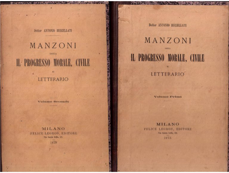 Manzoni ossia il progresso morale, civile e letterario Letture fatte avanti il Reale Istituto Lombardo di Scienze e Lettere dal membro effettivo Dott. A. Buccellati professor ordinario di diritto penale nella R. Università di Pavia