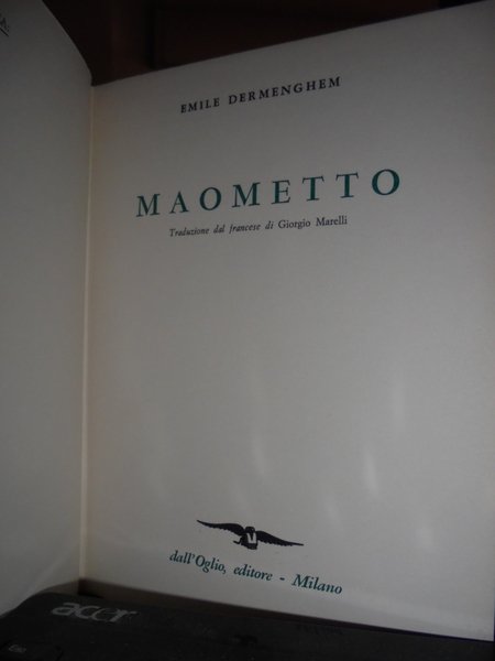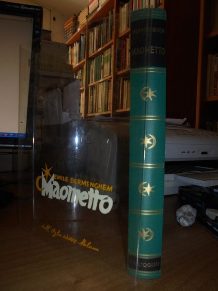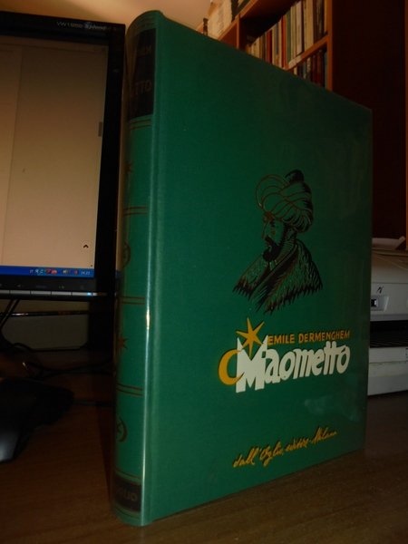 Emile, Dermenghem. Milano, dall' Oglio Editore, 1973. Traduzione dal francese di Giorgio Marelli. Collana Storica. Medaglioni, fregi, diciture di tutti i volumi della Collana ad opera del pittore Mino Buttafava. In-8° (cm. 21,5); cop. originale rigida in tutta tela editoriale illustrata, con titoli e fregi in oro al dorso più protezione in acetato trasparente con titoli al piatto; pp. 300, (4). Con 6 illustrazioni in bianco e nero a piena pagina su carta patinata fuori testo. Piatto anteriore figurato con busto di Maometto. Esemplare in stato di nuovo. Uff. TV. mob. nostro