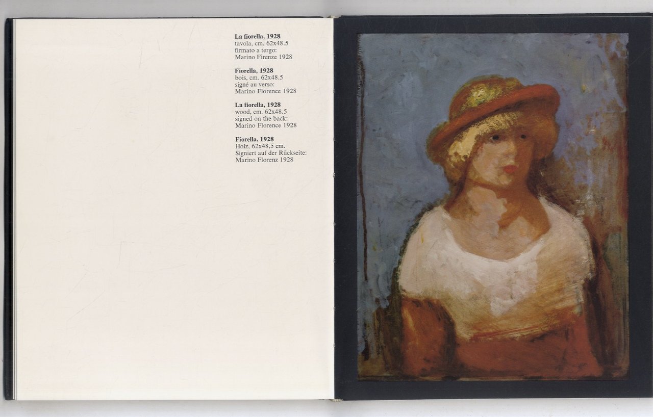 Milano, Castello Sforzesco, 1976, in-8 quadrato, cartonatura editoriale con il dorso in tela, illustrazione a colori applicata sul piatto anteriore, pp. [38], 21 tavole a colori riproducenti i dipinti con schede di presentazione delle opere, pp. [10]. Invio autografo di Marino Marini al verso del frontespizio.