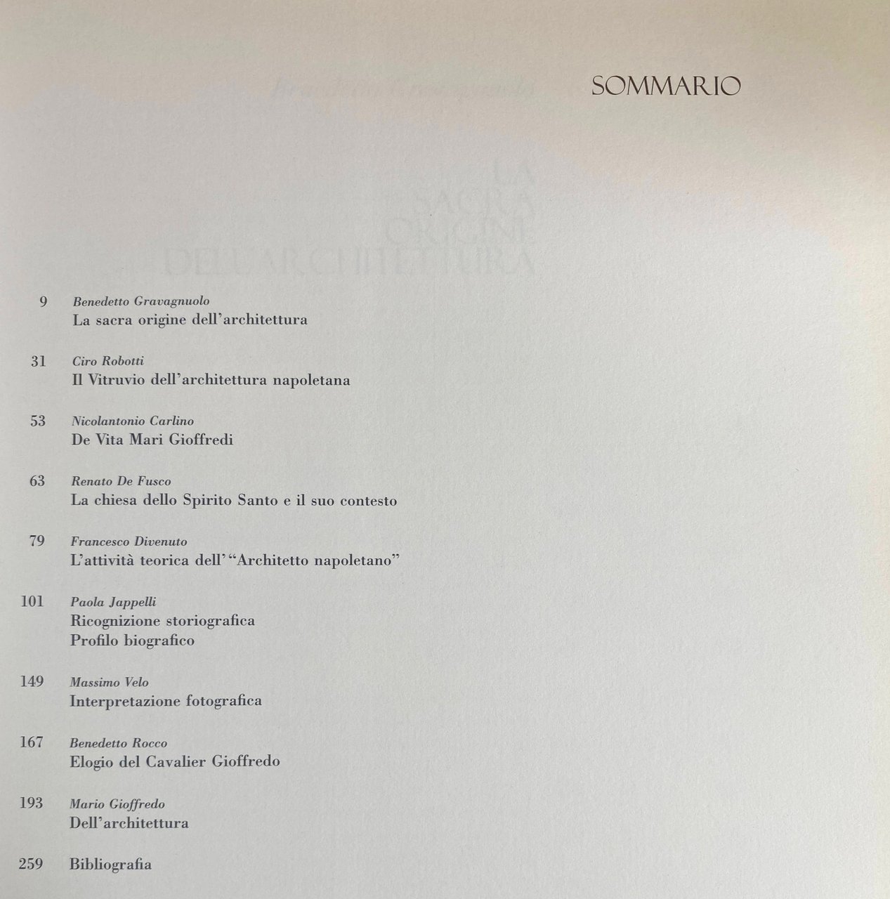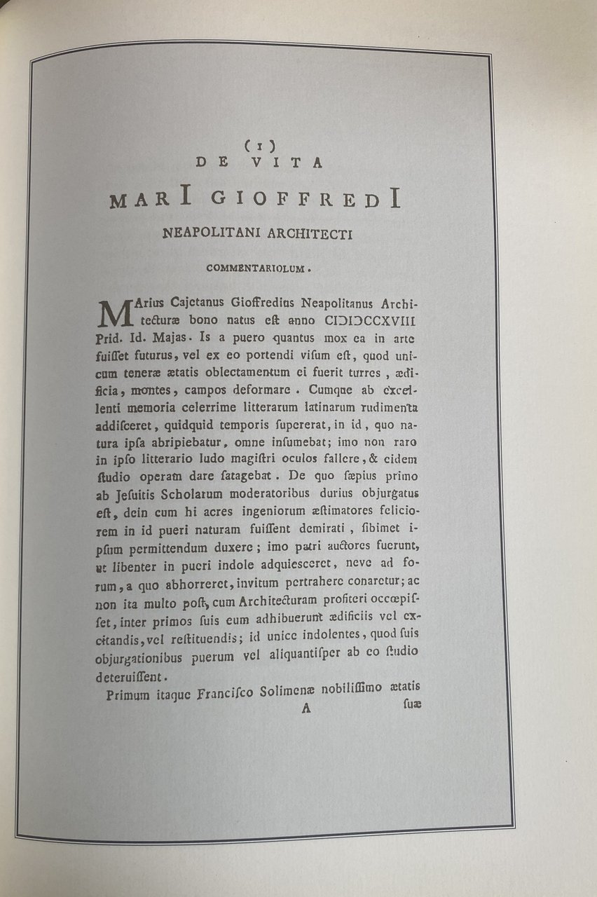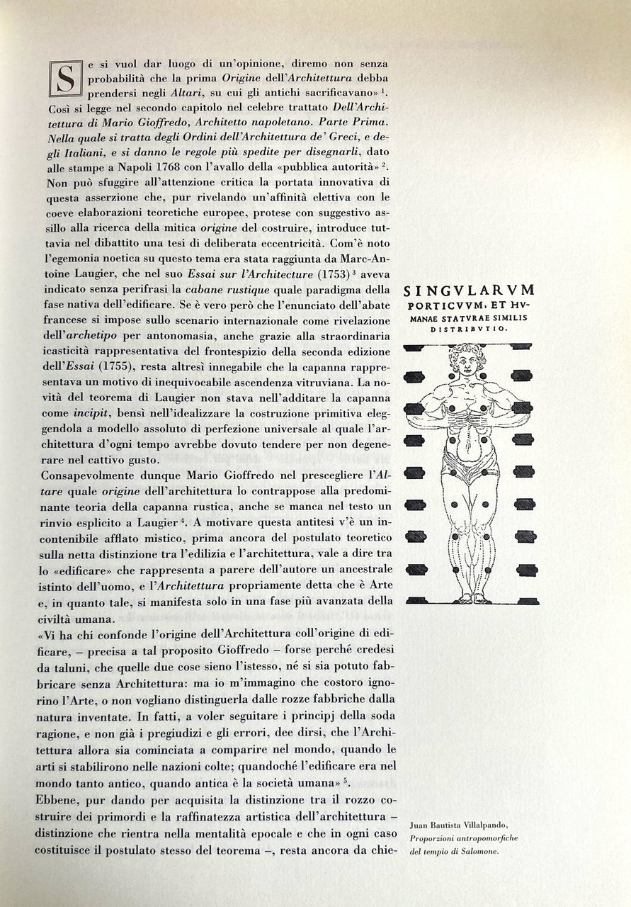 Soggetti: Architettura napoletana Biografie Memorie Opere architettoniche Restauro Progettazione Architetti napoletani Collezionismo Rocco Benedetto Elogio al cavalier Gioffredo Stamperia di Perger Settecento Disegni Veduta Prospettiva Reggia di Caserta Sacra origine dell'architettura Vitruvio De Vita Mari Gioffredi Spirito Santo Contesto Attività teorica Ricognizione storiografica Profilo biografico Piante Storia Storiografia Critica Bibliografia Riferimento Antichi Archi Arti Artisti Banco Barocco Capitello Cartella Casacalenda Chiese Cinque Ordini Classici Colonne Corintio Cornice Cornicione Cultura architettonica Cupola Decorazione Documenti Dorico Duomo Fabbrica Facciata Ferdinando Fuga Fiengo Fondo Forma Gotico Grafica Greci Gusto Inediti Jonico Latilla Lavori Luigi Vanvitelli Monumenti Napoli Nobilissima Cavalcanti Gravina Pane Piedestallo Pilastri Portale Portico Progetto Proporzioni Rilievo Solimena Strazzullo Studio Tavole Tegola Templi Trattato Vedute Venditti Villa Campolieto Ristampe anastatiche Riproduzione Facsimile Fotografie Libri rari illustrati fuori catalogo Edizioni pregiate Marc-Antoine Laugier Essai sur l'Architecture Cabane rustique Edificare Costruzione Altare Capanna rustica Edilizia Arte Juan Bautista Villalpando Concorso Martino Buonocore Trattati teorici Palladio Antonio Niccolini Carlo Borbone Ercolano Pompei Stabia Paestum Basilica Hera Nettuno Atena Classicismo settecentesco Macchine da festa Rococò Carro del Battaglino Genoino Sedile di Porto Chiesa del Carmine Vasto Palazzo Partanna Camillo Napoleone Sasso Signorelli Gino Doria Palazzi Chiaia Schiavo Cesare De Seta Gleijeses Catalano Celano Russo Don Fastidio Piazza dei Martiri Carlini Anthony Blunt Waise Centro storico Francesco Milizia Illuminismo Neapolitan architecture Biographies Memoirs Architectural works Restoration Planning Architects Collectibles Praise Printing house Eighteenth century Drawings View Perspective Palace Vitruvius Context Theoretical activity Historiographical survey Biographical profile Plans History Historiography Criticism Bibliography Reference Ancient Arches Artists Baroque Capital Churches Five Orders Classical Columns Corinthian Frame Culture Dome Decoration Documents Doric Factory Facade Gothic Graphics Greeks Taste Unpublished Monuments Naples Pillars Portal Project Proportions Study Tables Tile Temples Treatise Views Villas Anastatic reprints Reproduction Photographs Rare illustrated books out of print Fine editions Construction Altar Rustic hut Building Art Competition Treatises Bourbon Herculaneum Pompeii Neptune Athena Eighteenth-century classicism Party machines Rococo Palaces Historic center Enlightenment
