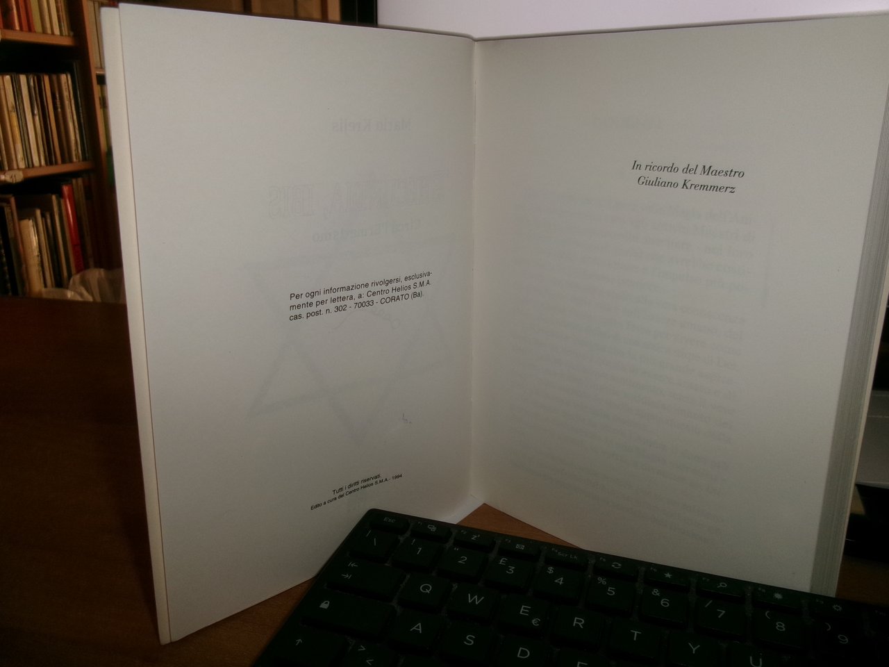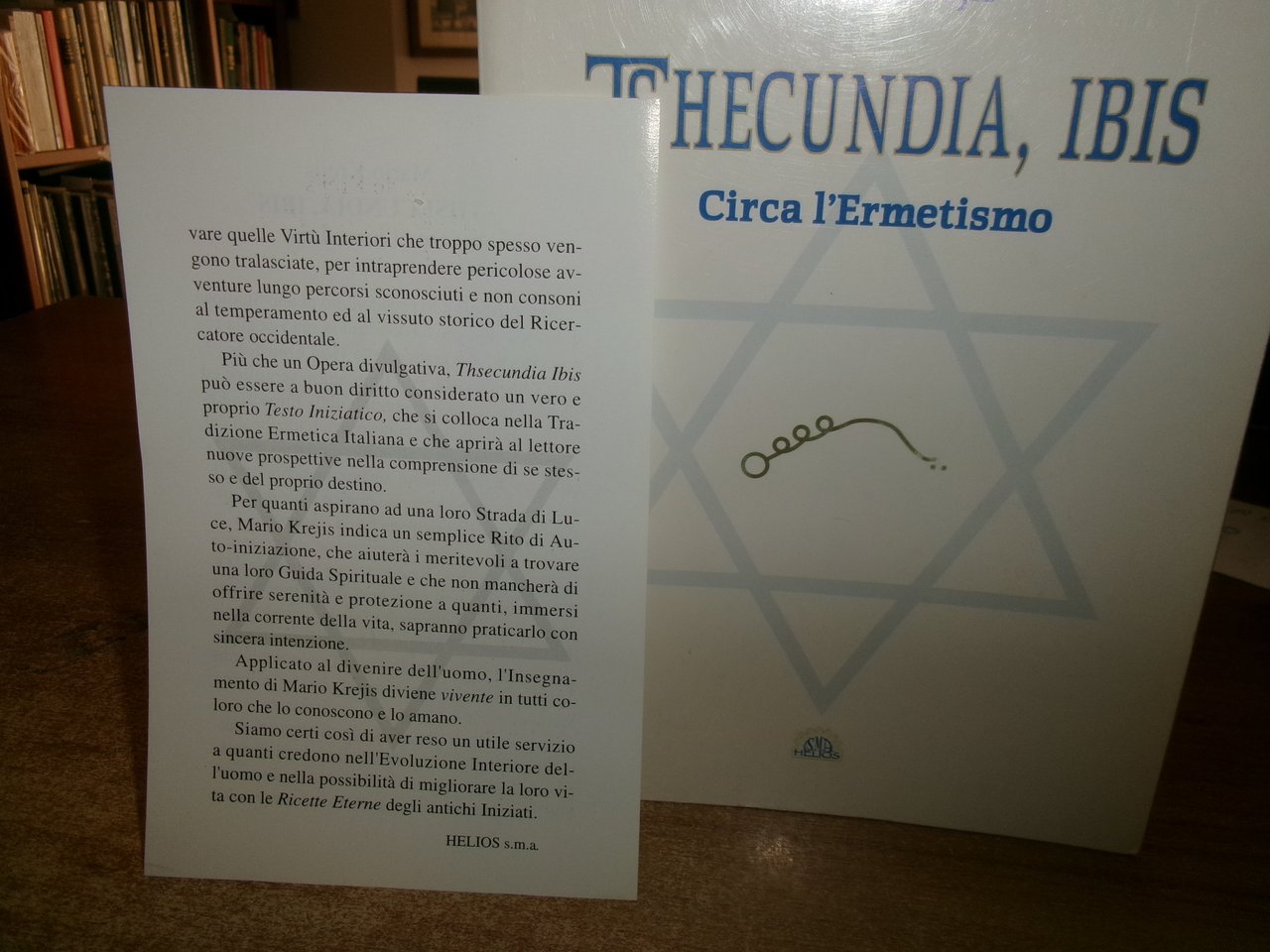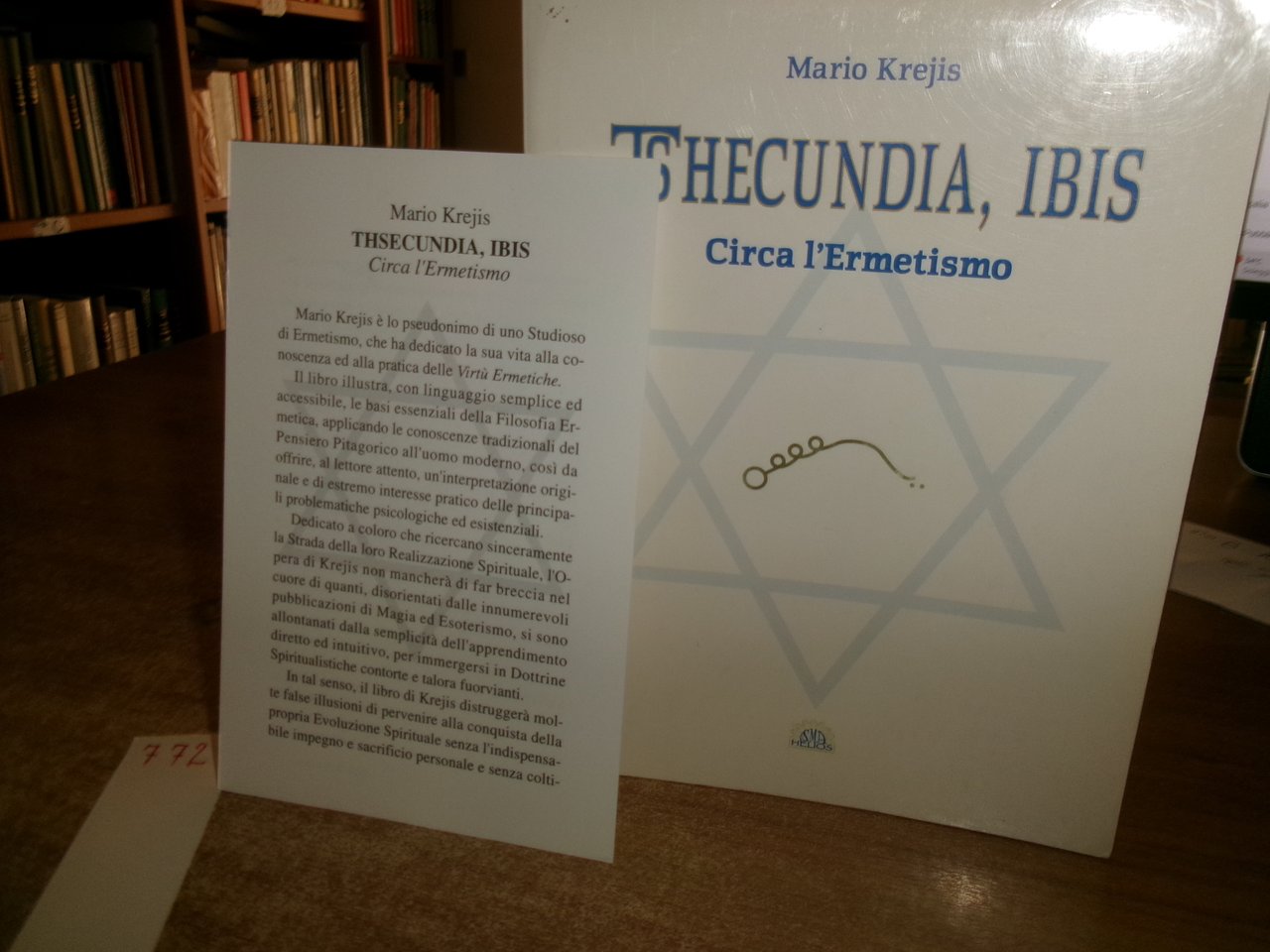 MARIO KREJIS. TSHECUNDIA, IBIS circa l' Ermetismo. Edito a cura del Centro Helios, 1994. In-8°, br. edit. 375 pp. Come nuovo. Neg. mob. nero W in basso in busta trasp.