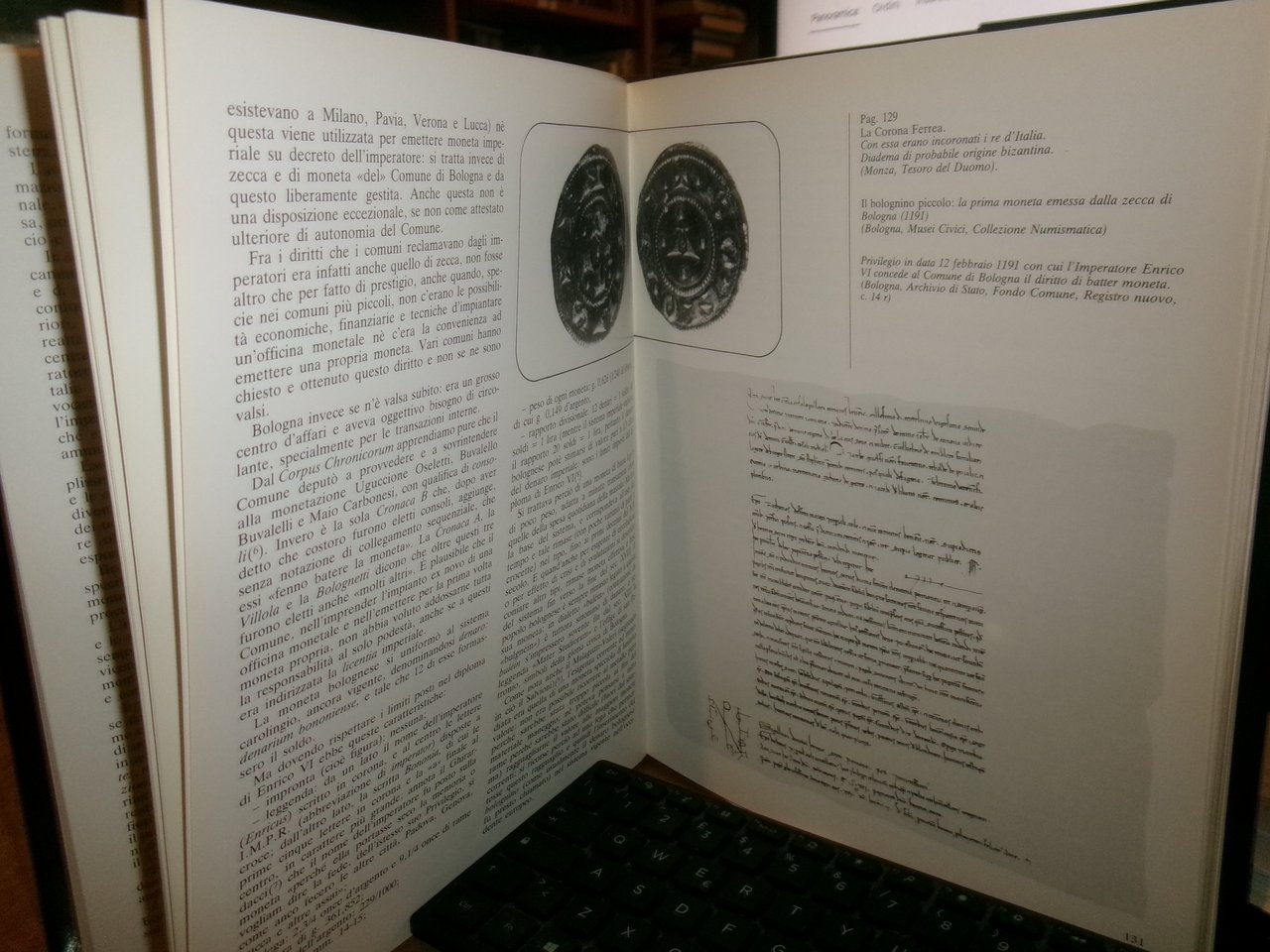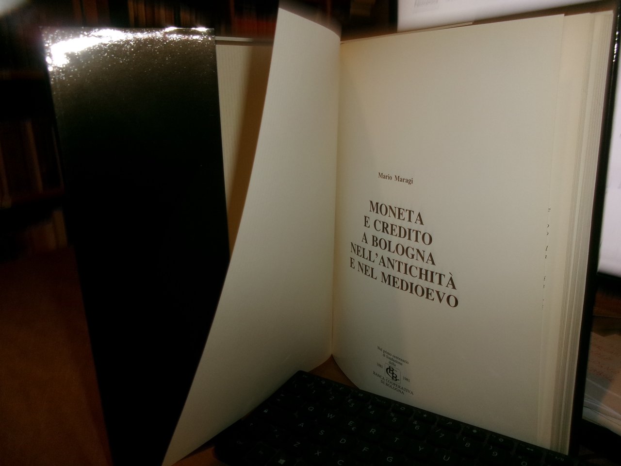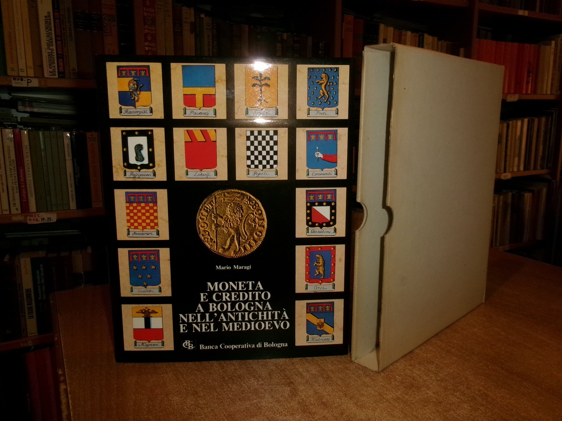MARIO MARAGI. Moneta e Credito a Bologna nell' Antichità e nel Medioevo. Bologna, Calderini, 1981 per Banca Cooperativa di Bologna. In-4°, tela edit. con titoli in oro e sovracopertina ill. a col. 256 pp. con numerose illustrazioni a colori e in bianco e nero n.t. Esemplare come nuovo in astuccio, Neg. mob. L