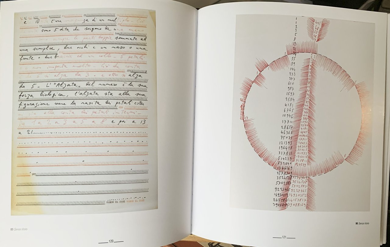 mi ricordo adesso / ricordati sempre / che il disegno del cerchio / è di autore indipendente / e d'altissiomo ingegno/ e poi lo dico a te" (dalla IV di copertina). I ed. (aprile 2007). Catalogo della mostra itinerante postuma Torino, Fondazione Merz, 27 aprile-29 luglio 2007, a cura di Beatrice Merz (prima: Kunstmuseum Winterthur, 12 gennaio-9 aprile 2007, a cura di Dieter Schwarz). Con traduzione dei saggi in inglese. Traduzioni: Giacomo Barsanti, Lucian Comoy, Fiona Eliott, Cristina Vezzaro. VIII grande/ 380/ rilegatura rifinita in carta satinata bianca con illustrazione a colori al primo piatto (Mario Merz, Senza titolo, 1973). Illustrazioni in b/n e a colori. Crediti fotografici: VV.. Stato buono-ottimo. Sommario: Premessa e ringraziamenti; Beatrice Merz (Fondazione Merz) e Dieter Schwarz (Kunstmuseum Winterthur) - Mario Merz: il disegno come fatto totale; Dieter Schwarz - Disegnbi - Sul disegno di Mario Merz; Lara Conte - Opere in catalogo - Biografia; Marcella Beccaria - Bibliografaia - English text - Foreword asnd Acknowledgements; Beatrice Merz e Dieter Schwarz - Mario Merz: il disegno come fatto totale; Dieter Schwarz - Mario Merz and the Politics of Drawing; Claire Gilman - On the Drawing of Mario Merz; Lara Conte - Catalogued works - Biography; Marcella Beccaria - Bibliography.