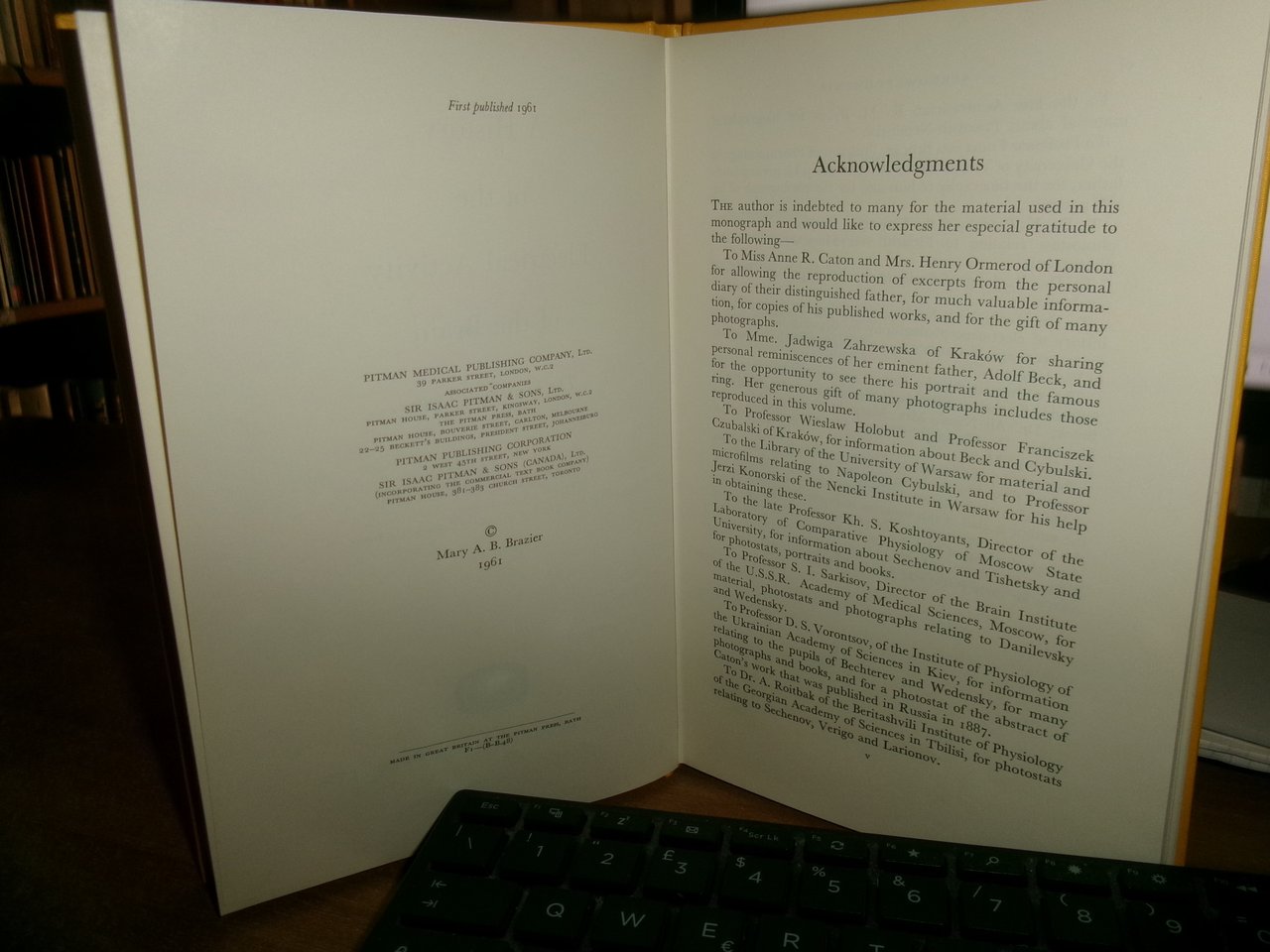 MARY A. B. BRAZIER. A History of the Electrical Activity of the Brain 1961