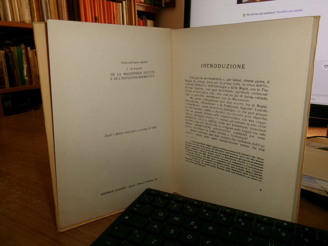 MASSONERIA Occulta ed Iniziazione Ermetica. Jean Marie Ragon. Roma, Editrice Atanòr, 1972. Traduzione integrale dall' originale a cura di Ercole Alvi con introduzione e note aggiuntive di Gino Testi e 17 illustrazioni fuori testo. In - 8°, cartoncino edit. 162, 1 f. bianco. Esemplare come nuovo. Negozio mob. 6