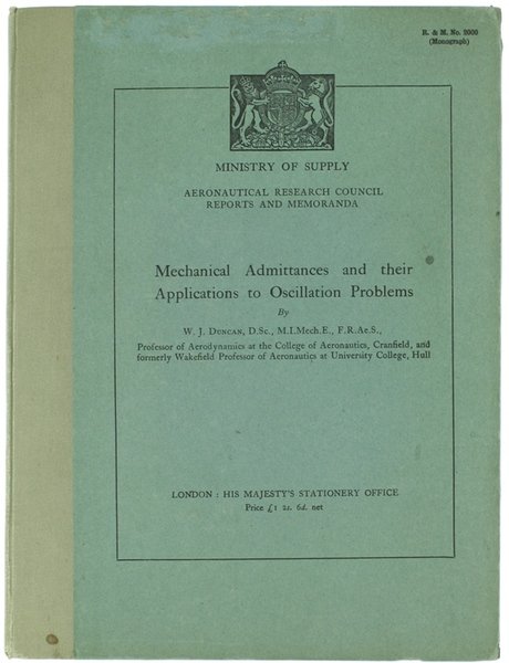 MECHANICAL ADMITTANCES AND THEIR APPLICATIONS TO OSCILLATION PROBLEMS. | Libri antichi e moderni | Duncan W.J.