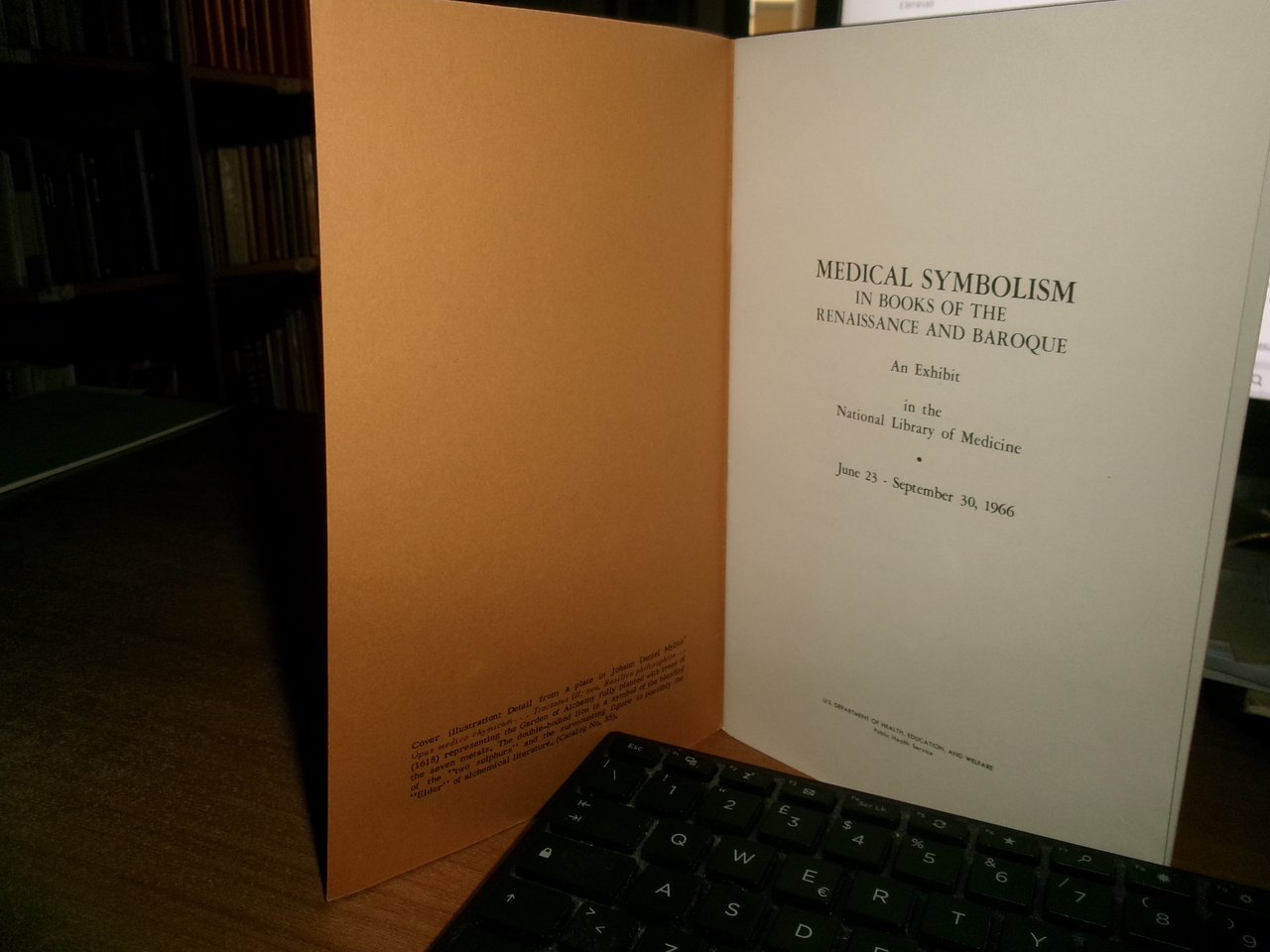 MEDICAL SYMBOLISM in BOOKS of the RENAISSANCE and BAROQUE. An Exhibit in the National Library of Medicine. June 23 - September 30, 1966. In-8°, br. con 2 punti metallici. 22 pp. con numerose riproduzioni n.t. Opuscolo come nuovo. Uff. A - I - 1 - 2