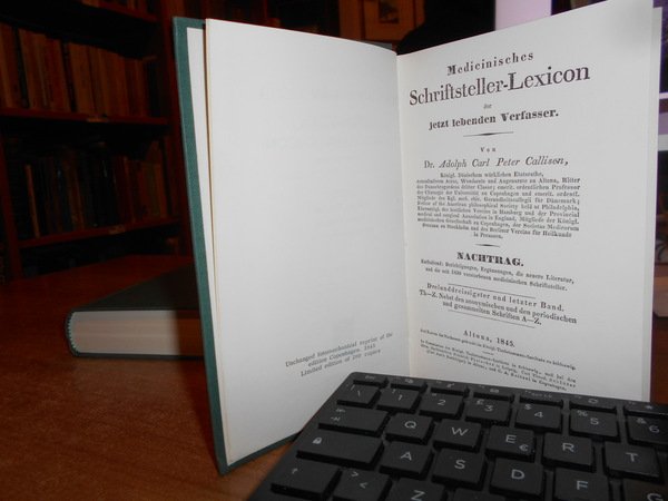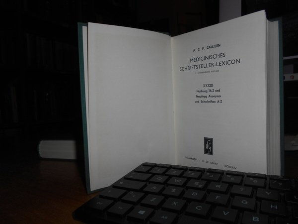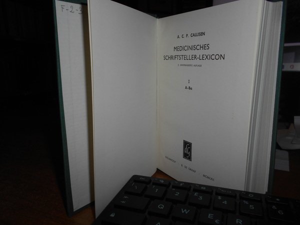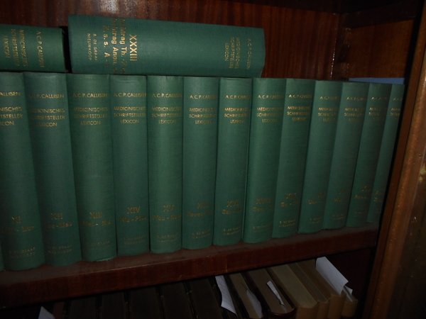 ADOLF KARL PETER CALLISEN. Medicinisches Schriftsteller-Lexicon. Nieuwkoop, B. De Graaf, 1962/1964. 33 volumi in-16°, tela verde edit. con titoli in oro ai dorsi. Reprint der Ausgabe Kopenhagen und Altona 1830-45. Monumentale opera. Esemplare completo e come nuovo. Uff. F - 2 - 3